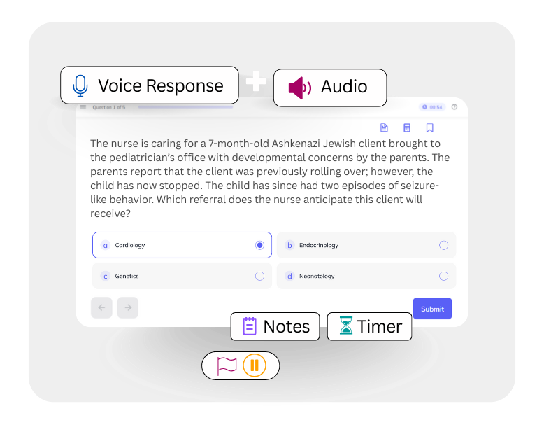 Get multifaceted test prep tools from audio to detailed rationales, images, built-in notes, timers, and voice response. All in One Place.