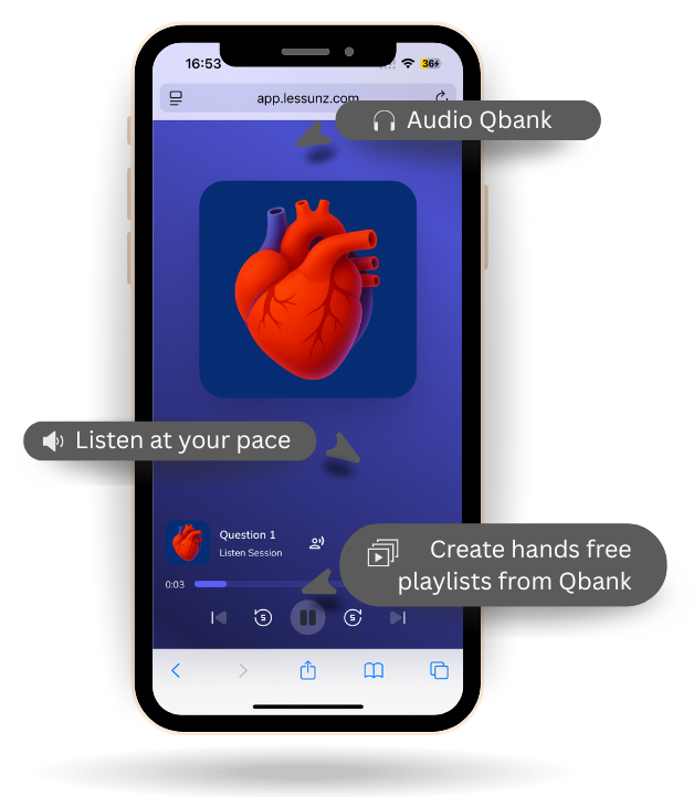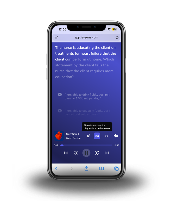 Lessunz is the first NCLEX prep that lets you interact with questions by voice. Say your answer out loud. Hear the rationale back.